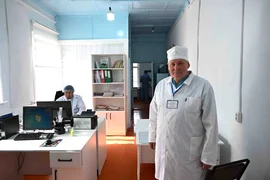 其中,卡瑟马利耶夫前往卡拉科尔市州联合医院进行视察。该医院主楼建于1968年,共设550张床位。卡瑟马利耶夫实地查看了重症监护室和外科病房,了解了现有医疗设备及患者治疗条件。