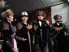 吟游诗人以库尔奈双簧管、苏尔奈及多鲁尔巴斯鼓为伴奏,为来宾演绎了吉尔吉斯民族史诗《玛纳斯》。随后,“坎巴尔坎”与“阿克马拉尔”艺术团以音乐形式续写史诗篇章,将演出推向高潮。