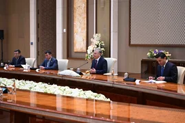 (比什凯克,2025年6月11日,卡巴尔通讯社)吉尔吉斯斯坦总理兼总统办公厅主任阿德尔别克·卡西马利耶夫在对乌兹别克斯坦工作访问期间,与乌总统沙夫卡特·米尔济约耶夫举行会谈。