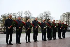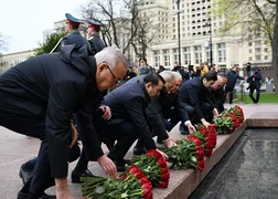 马马塔利耶夫与来自集体安全条约组织成员国的同事一道,向伟大卫国战争阵亡者默哀致敬。