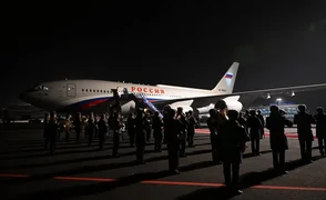 俄罗斯总统弗拉基米尔·普京国事访问于11月27日结束之际,萨德尔·扎帕罗夫总统赴机场为其送行。