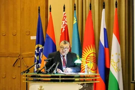 会议开始前,参会者观看了集体安全条约组织主席、吉尔吉斯斯坦总统扎帕罗夫的欢迎视频。