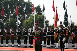 (比什凯克,2025年12月4日,卡巴尔通讯社)今日(12月4日),巴基斯坦伊斯兰共和国总理夏巴兹·谢里夫在伊斯兰堡总理府为吉尔吉斯斯坦总统萨德尔·扎帕罗夫举行正式欢迎仪式。