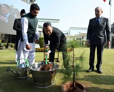 正式仪式结束后,国家元首与巴基斯坦总理共同参加了植树活动,随后前往会谈厅进行会谈。