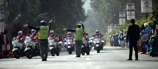 在双方互相问候后,军乐队奏两国国歌。仪仗队指挥官致欢迎辞。