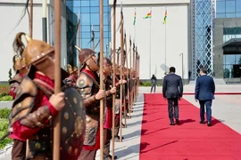(比什凯克,2026年4月29日,卡巴尔通讯社)在“和谐宫”国家官邸,萨德尔·扎帕罗夫总统正在与多哥共和国总理福雷·埃索齐姆纳·纳辛贝举行正式会晤。