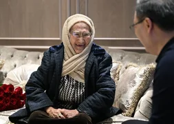 在温馨、非正式的氛围中,双方围坐在茶桌旁交谈。总统表示,自己至今仍清楚记得,是凯涅什坎·沙梅诺娃教会他书写人生中的第一个字母——“A”。他回忆说,当时孩子们还没有接受学前教育,都是满七岁后直接入学。