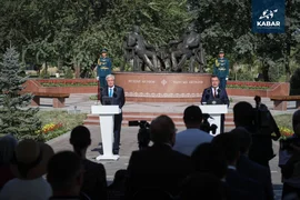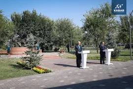 (比什凯克,2025年8月22日,卡巴尔通讯社)比什凯克“因特马克(Ынтымак)”公园举行“友谊金桥”雕塑揭幕仪式,吉尔吉斯斯坦总统萨德尔·扎帕罗夫与哈萨克斯坦总统卡西姆-若马尔特·托卡耶夫出席。