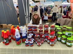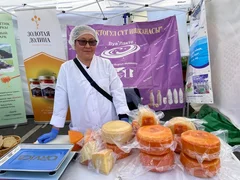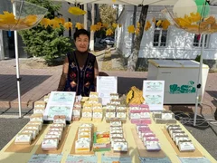 在“金秋”展销会上,参观者可以以实惠价格购买到多种有机农产品——蔬菜、水果、肉类、乳制品、面包、蜂蜜、干果及其他本地食品。