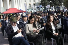 (比什凯克,2025年10月17日,卡巴尔通讯社)在比什凯克乌苏巴利耶夫广场,吉尔吉斯斯坦全国农业工业展览会“2025农业技术博览会”和“金秋”农产品展销会正式开幕,活动以庆祝吉尔吉斯共和国农业工作者节为主题。